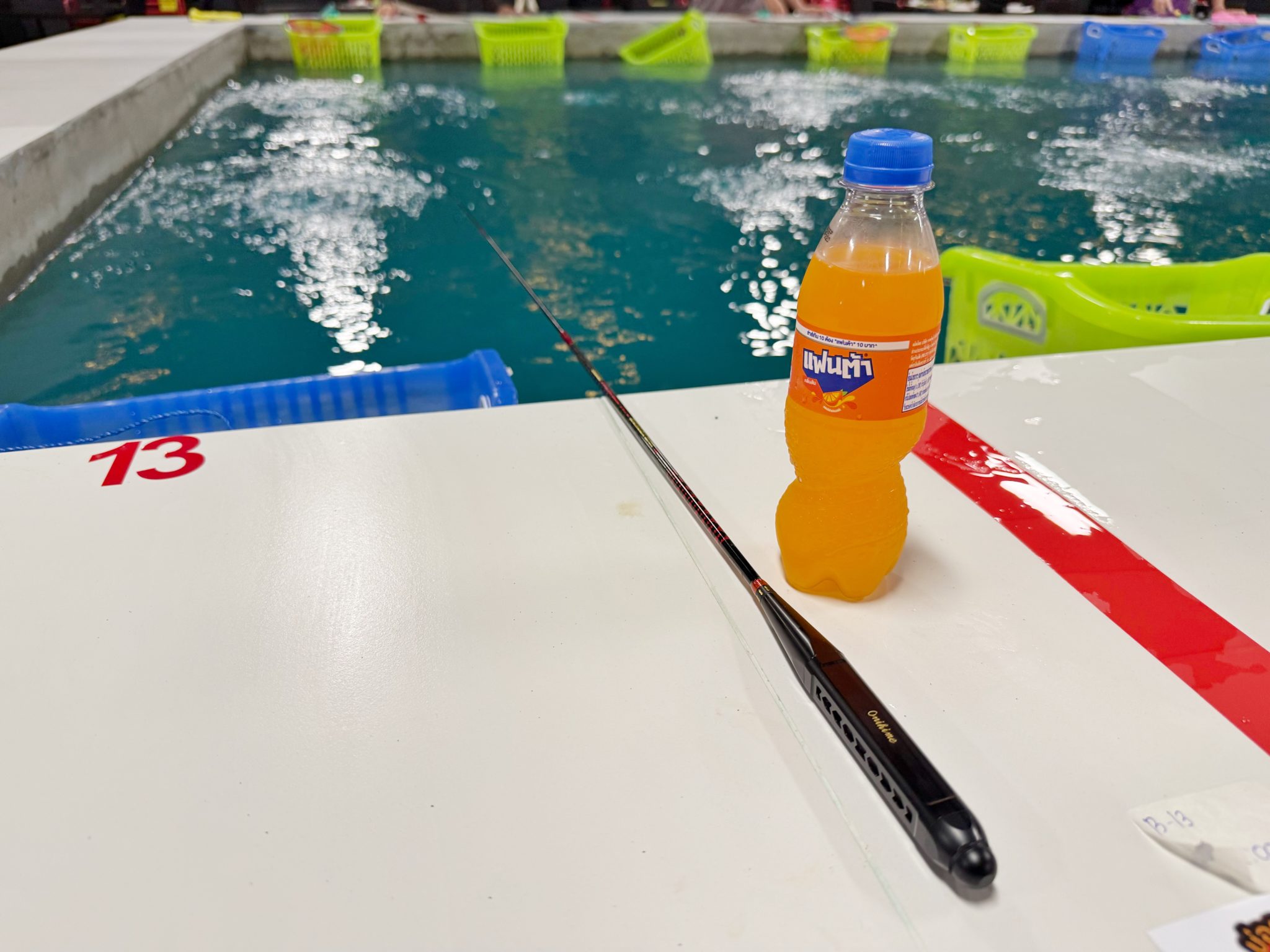気になるエビ釣堀の規模は26席と、大型の分類に入ります。そして前回のTHE SUNの釣り堀をそのまま引き継ぎ、水深が約160〜180cmほどあります。これはチェンマイでは一番水深のあるエビ釣堀です。