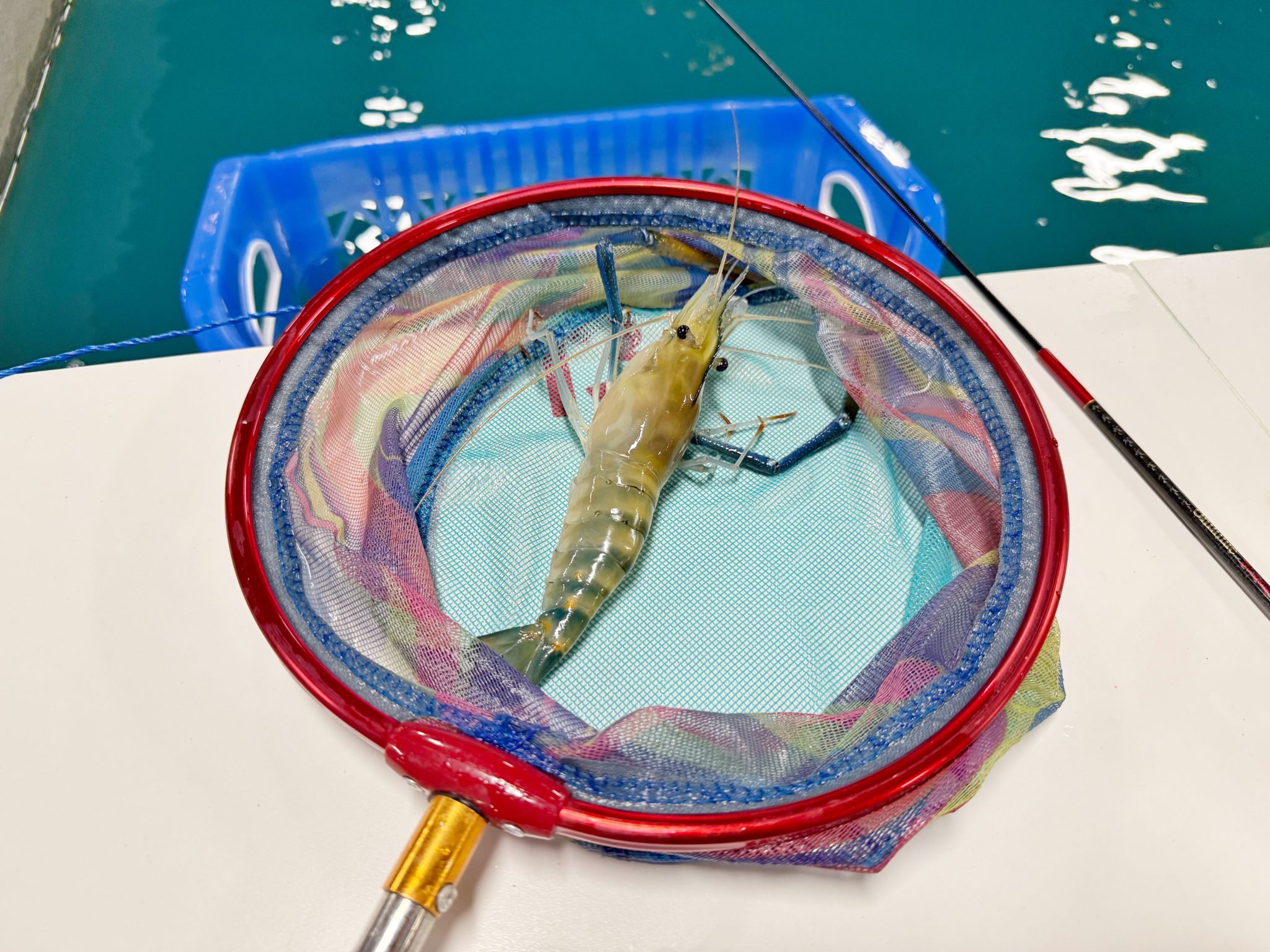 網の色が鮮やかなので、写真映えもしていい感じ。この調子でエビをどんどん釣り上げていきましょう。