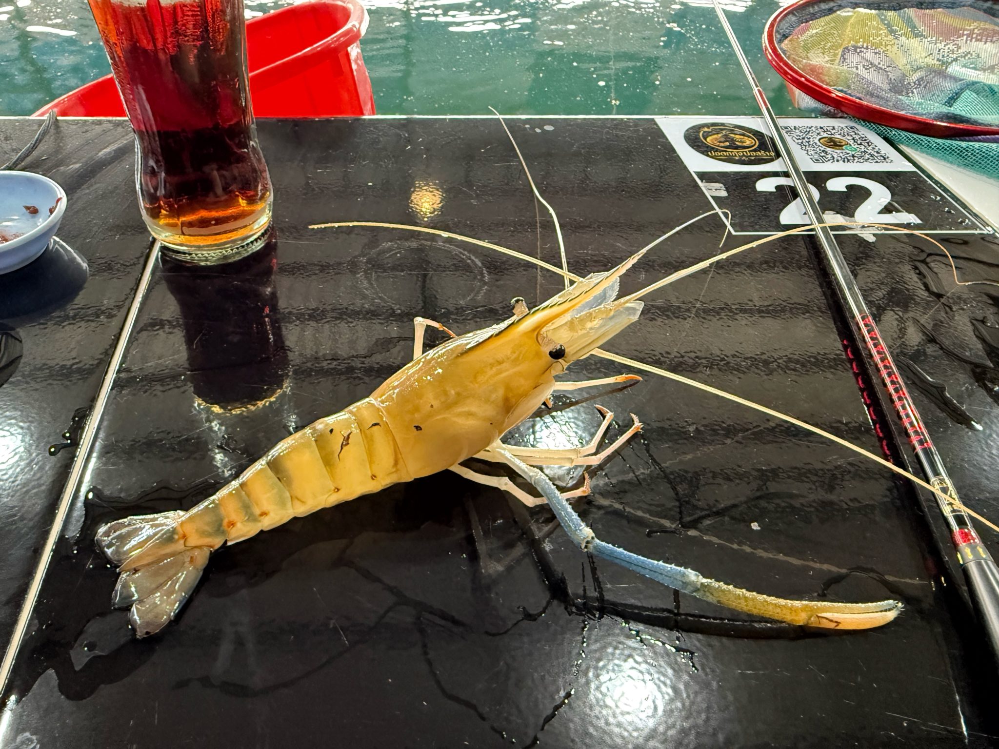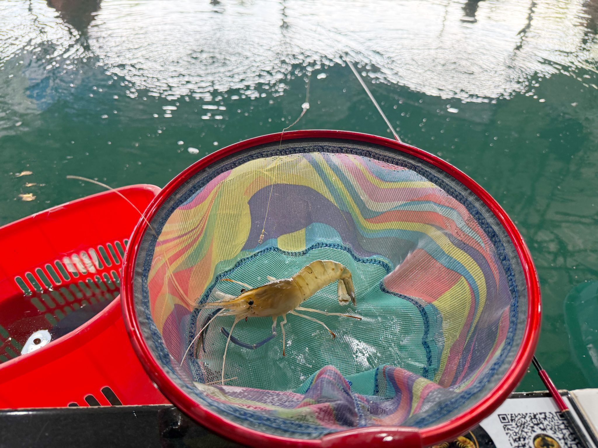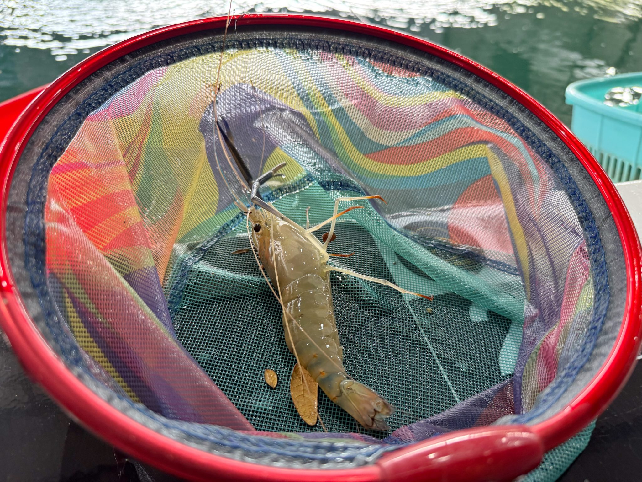 最後に大型のエビを釣り上げて、ちょうど二時間でエビ釣り終了です!
