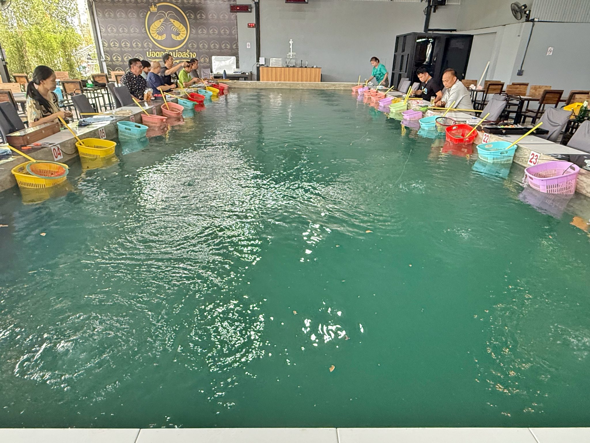 気になるエビ釣堀は、26席のチェンマイではやや大きめのタイプ。深さは、系列店と同じで少しだけ深めの造りになります。