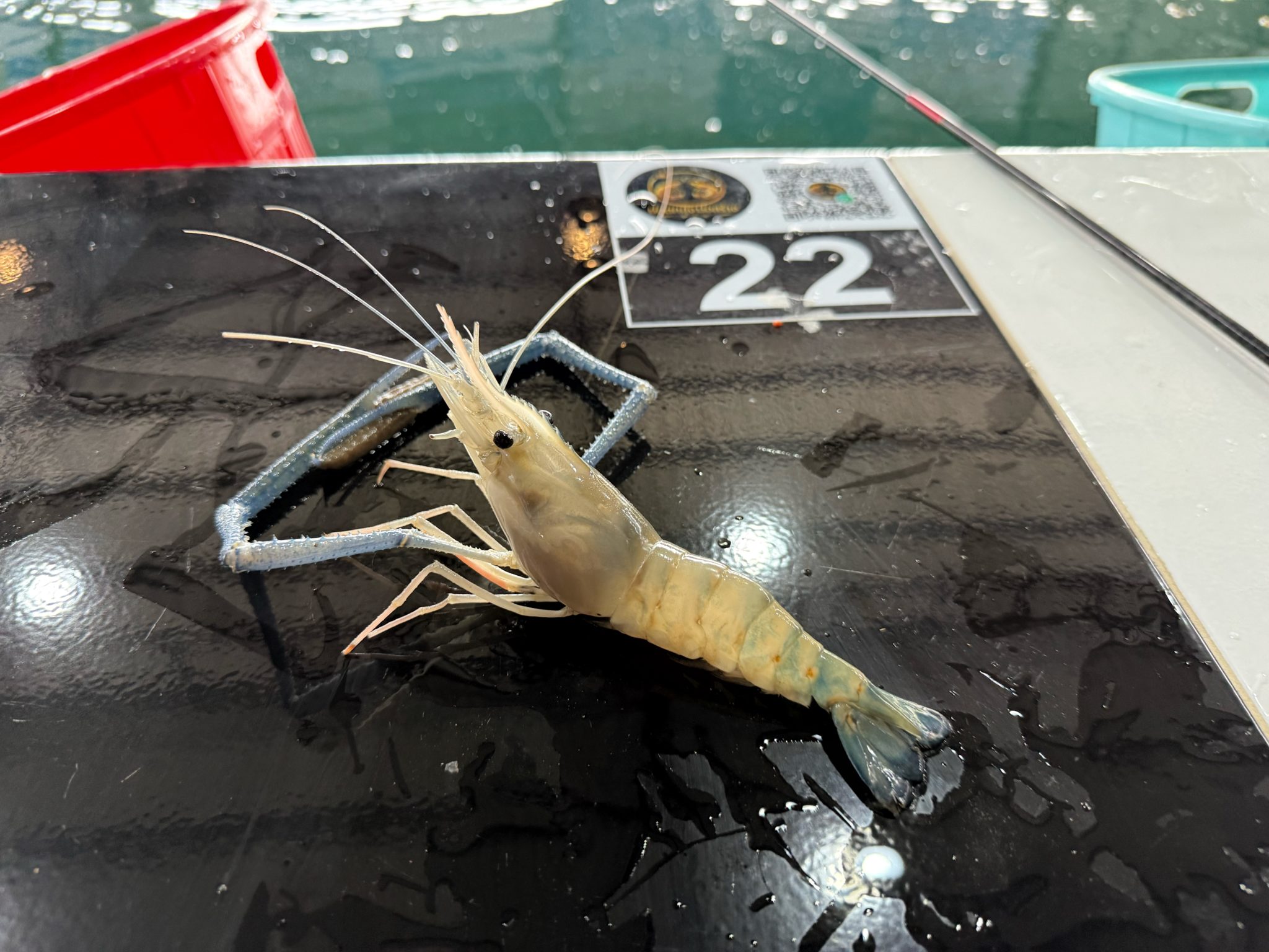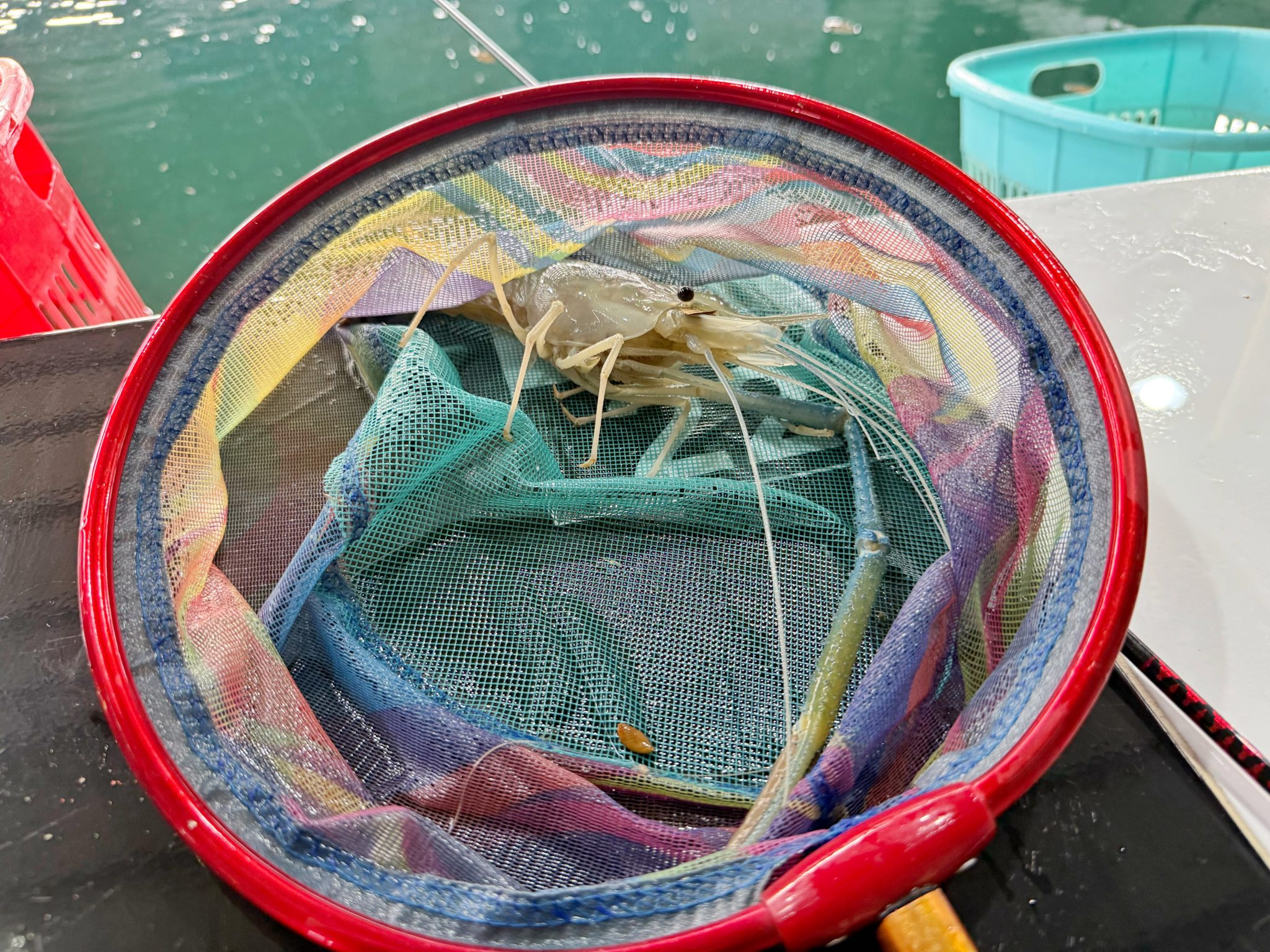 大体、一時間4匹のペースで釣っていけば良いテンポ感なので、今回は中央値くらいの釣果でした!大型のエビも入っており700gあったので満足です。