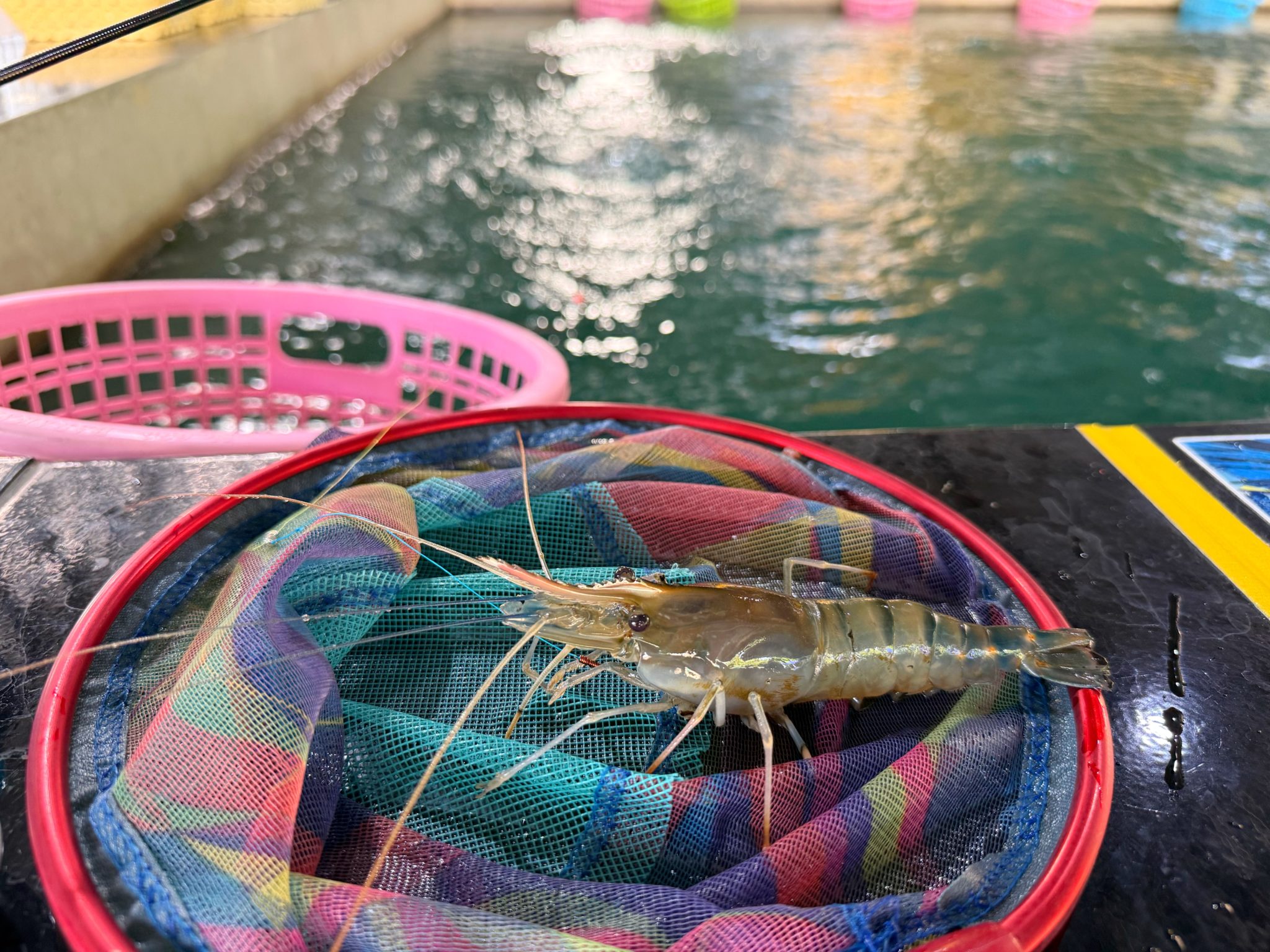 今回はあまり釣れませんでしたが、昔ながらのエビ釣り堀の居心地はのんびりしていて最高でした。最新型のエビ釣堀は音楽がガンガンに流れているのですが、このタイプのエビ釣堀はタイミュージックが静かに流れていてゆっくりとした時間を過ごすのにピッタリです。